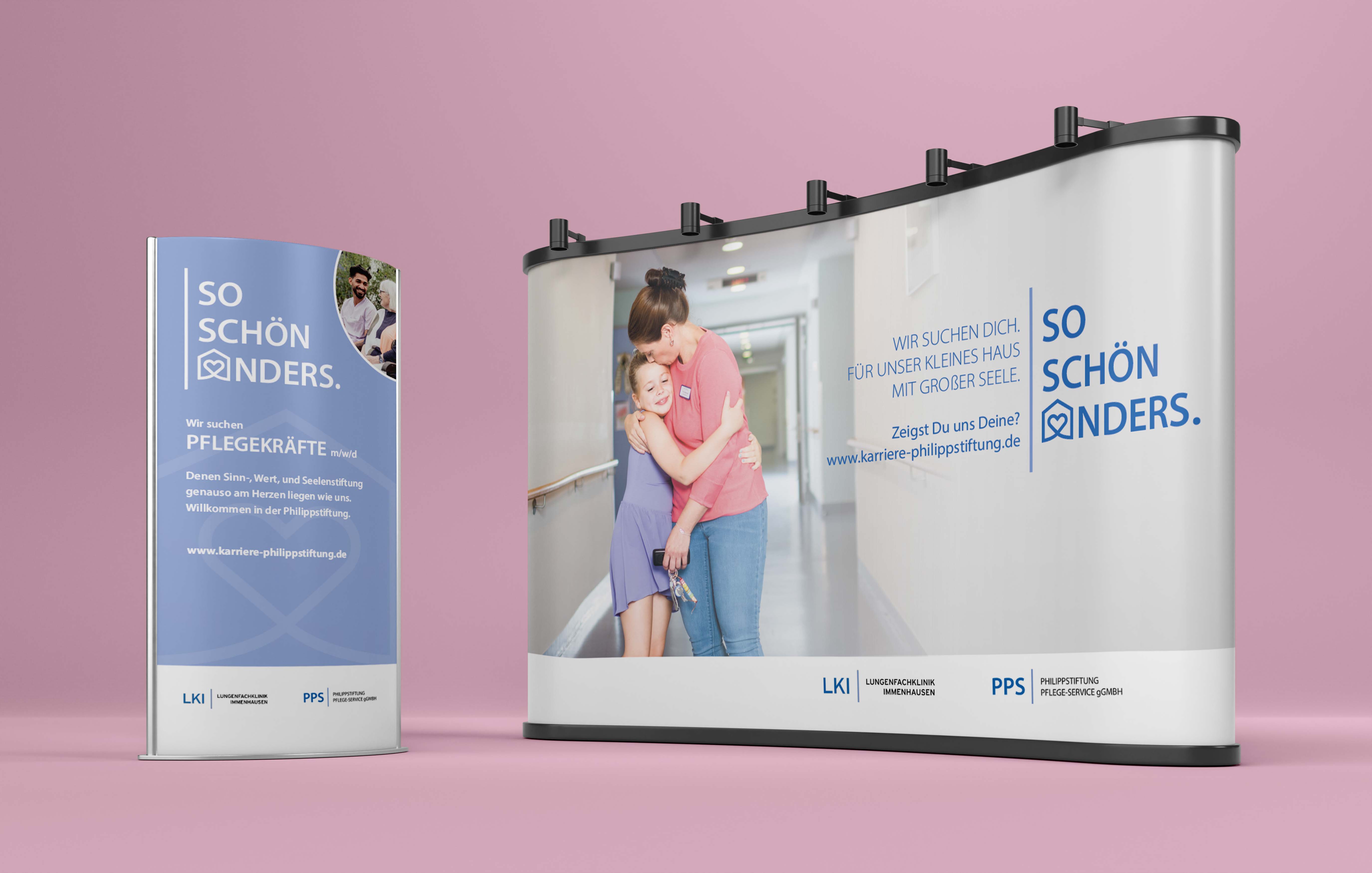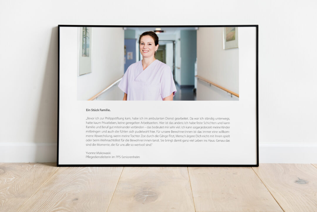 Das ist wohl unsere persönlichste und emotionalste Kampagne – denn sie hat einen bewegenden Hintergrund: Mitten in unserem Positionierungsprogramm kam meine schwerkranke Mutter zur Kurzzeitpflege in die Phiippstiftung. Zu diesem Zeitpunkt hatten wir die Markenwerte bereits herausgearbeitet, aber der Kern fehlte noch. Bis ein paar Tage später meine Mutter plötzlich sagte: „Hier ist es einfach so schön anders.“ Als sie diese Worte aussprach, war uns klar: Genau das ist es: „So schön anders.“ Das ist der Kern, der für das Gefühl steht, für das wir die richtigen Worte gesucht haben. Für dieses Gefühl voller Sinn-, Wert- und Seelenstiftung. Das es so schön anders und die Philippstiftung so besonders macht. Danke an dieses kleine Haus mit der großen Seele. Diese Employer Branding Kampagne wird immer einen besonderen Platz in meinem Herzen haben.